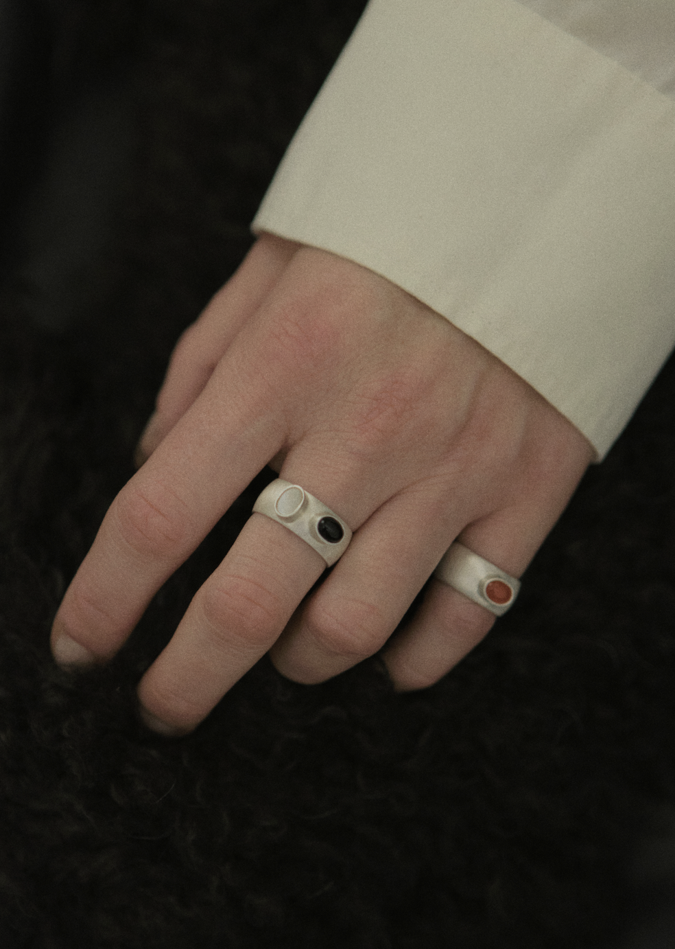 masywny, ręcznie wykonany pierścionek ze srebra próby 925 o wyrazistej, solidnej formie ozdobiony dwoma oczkami, w których osadzone są naturalne kamienie wybierane indywidulanie przez Was. Możliwość samodzielnego doboru kamieni pozwala stworzyć unikatową kompozycję dopasowaną do osobistych preferencji. Pierścionek może zostać wykończony w satynie lub wypolerowany na wysoki połysk.