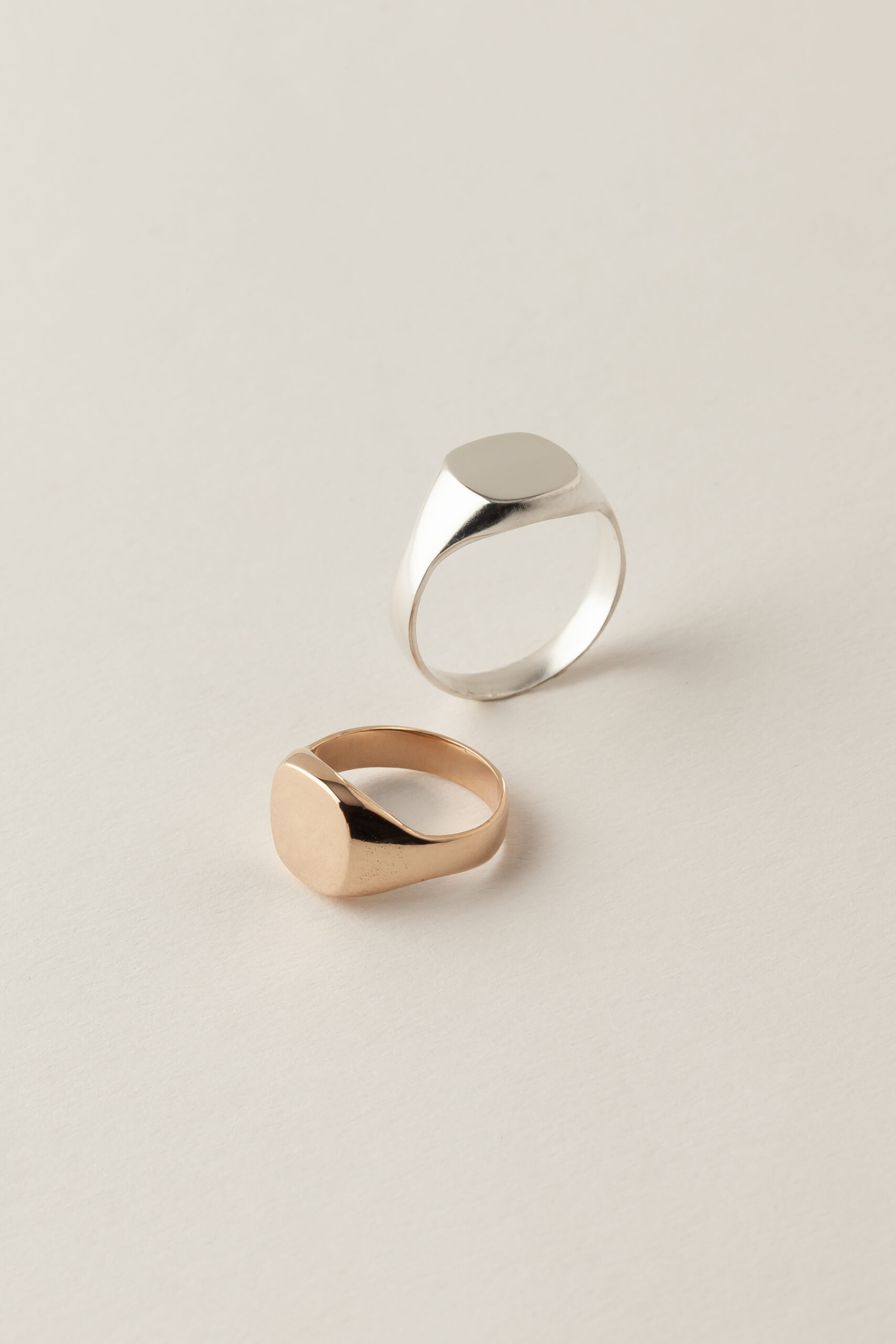 wykonany ze złota 585 masywny pierścionek unisex o formie obłego kwadratu