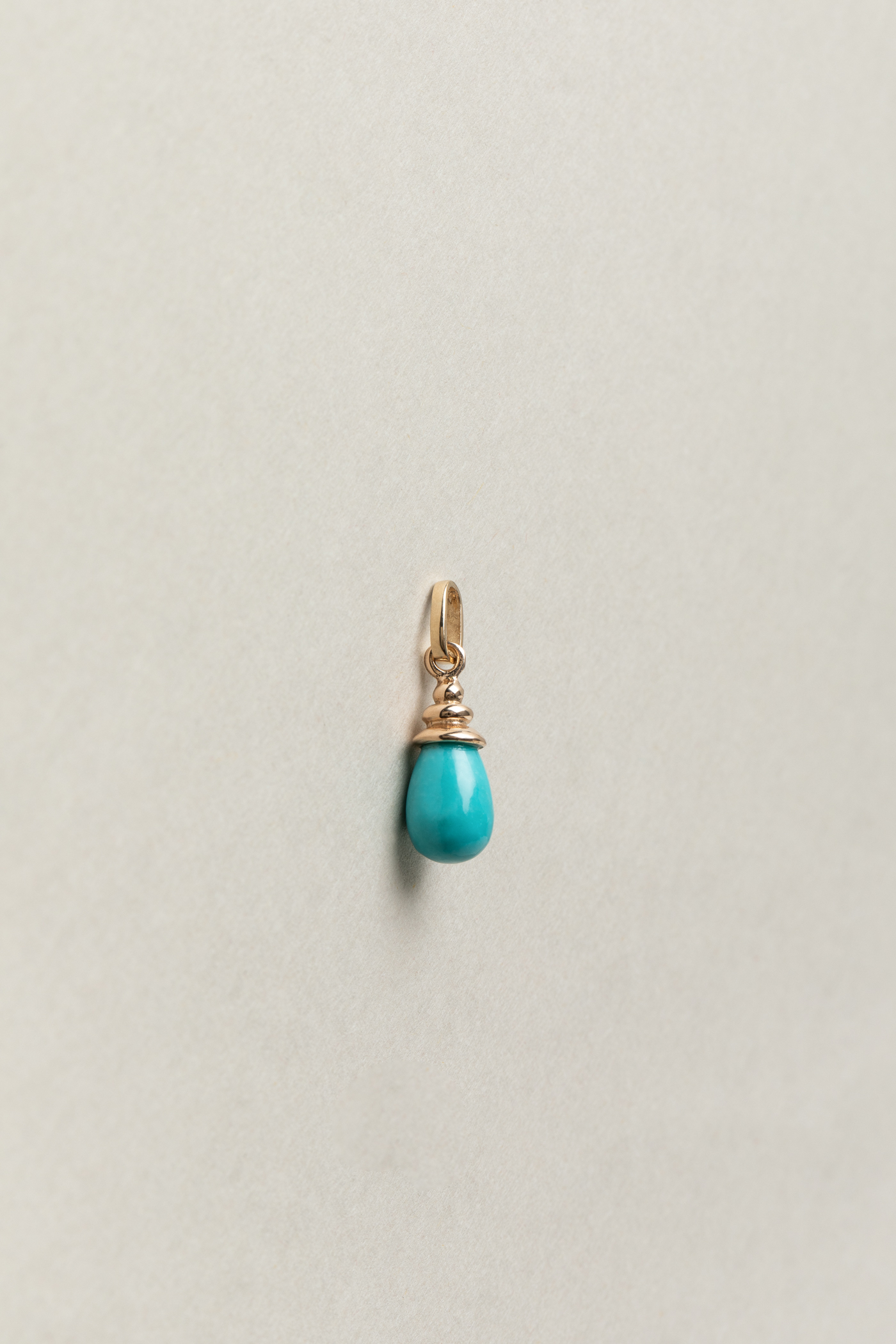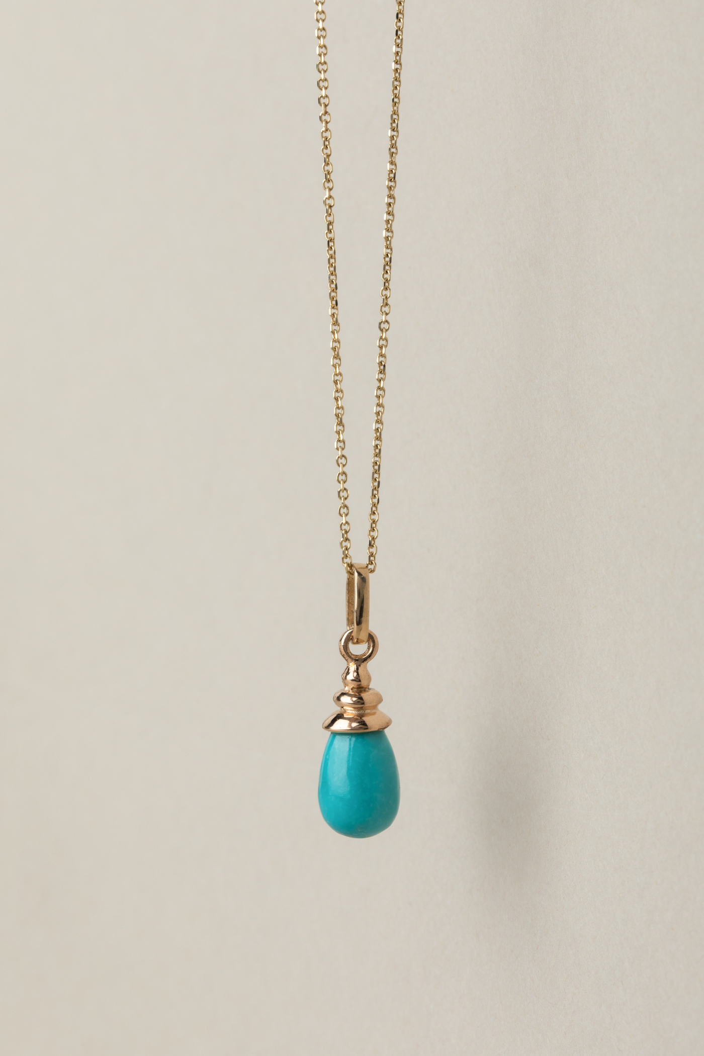 zawieszka o rzeźbiarskim charakterze, w której elegancka plisowana oprawka otula wykonany na zamówienie pod autorski wzór sopel turkusu o pięknej niebiesko – zielonej barwie