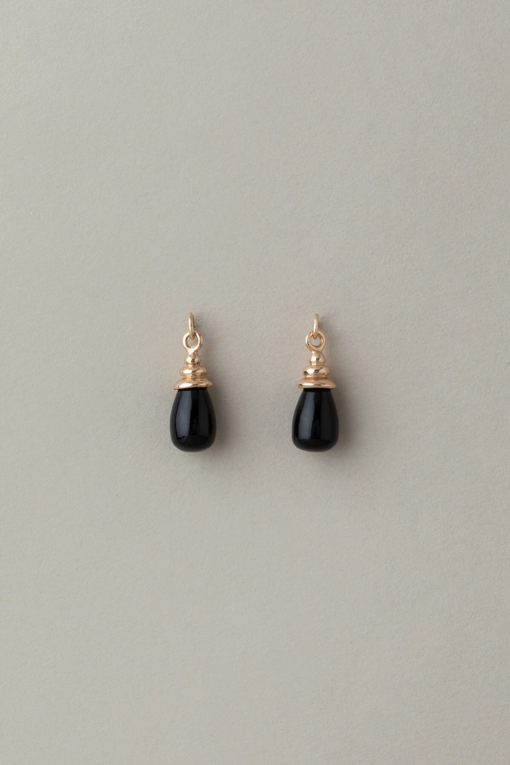 kolczyki o rzeźbiarskim charakterze, w których eleganckie, plisowane oprawki otulają wykonane na zamówienie sople onyksu niczym uchwycone w ruchu fragmenty nocy