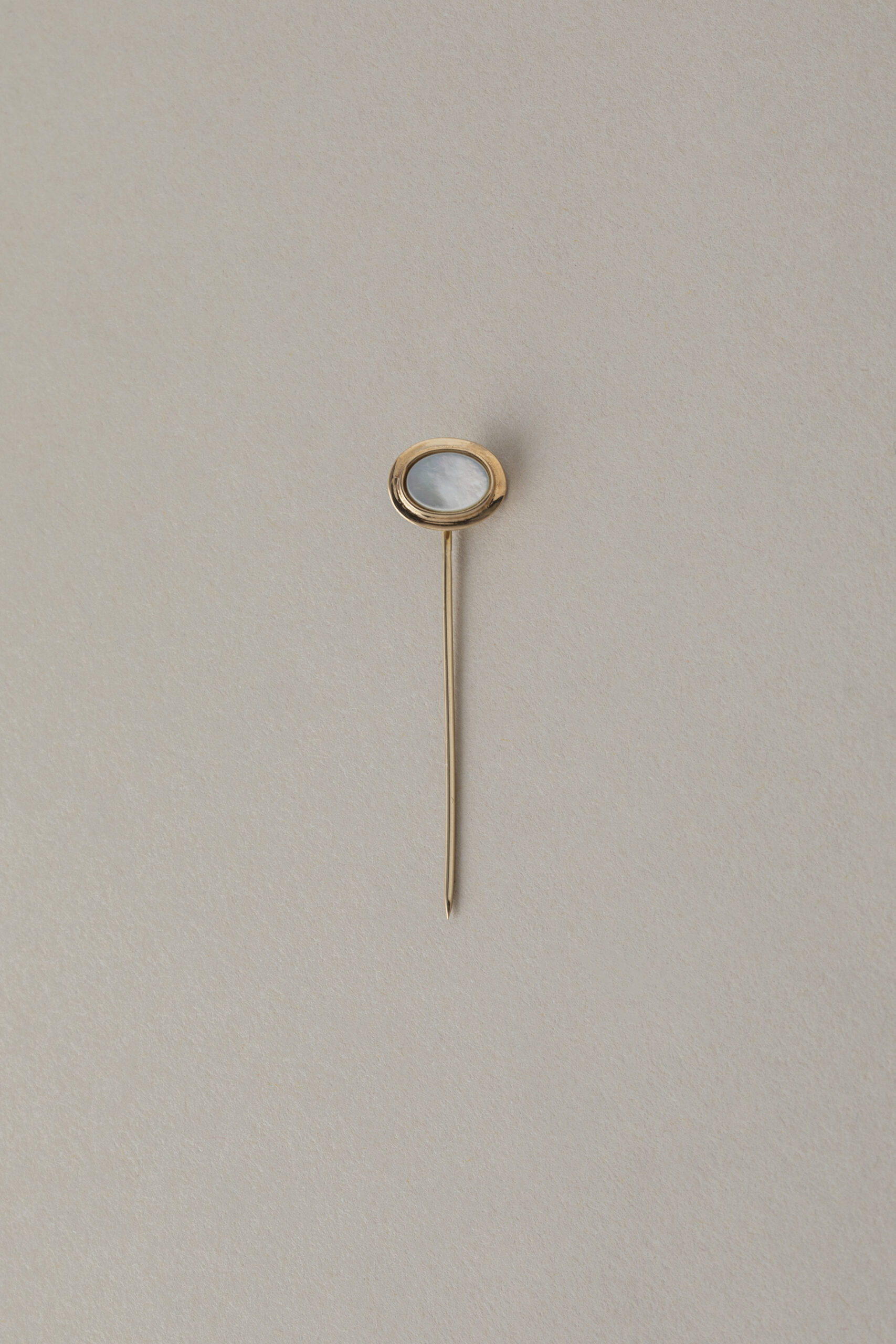 elegancka, ręcznie wykonana ze złota próby 585 broszka – szpilka wypełniona naturalną masą perłową